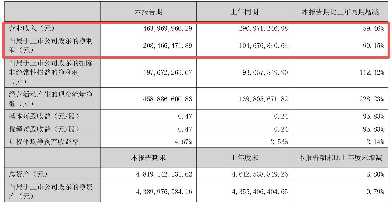 2025年上半年,公司实现营业收入4.64亿元,同比增长59.46%;归母净利润为2.08亿元,同比增长99.15%。中简科技将营收增长归因于受客户需求增加影响,公司产品销售数量增加。